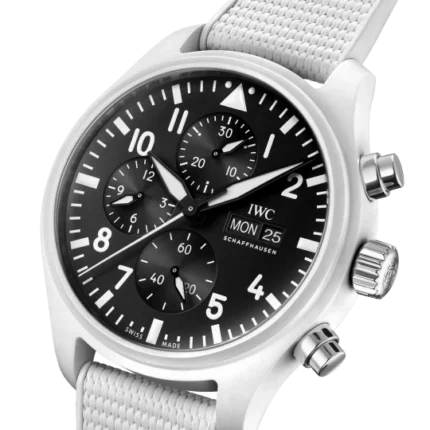 <!– –> case: titanium case41.0 mm diameterThickness 14.5mmscrew down crownTransparent sapphire glass case backWater resistance 10 bar movement: 69385 movementIWC-manufactured