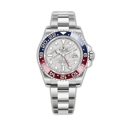 THE OYSTER PERPETUAL GMT-MASTER II IN 18 CT WHITE GOLD WITH AN OYSTER BRACELET. This model features a meteorite dial