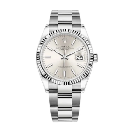 <!– –> THIS OYSTER PERPETUAL DATEJUST 36 IN OYSTERSTEEL AND WHITE GOLD FEATURES A SILVER DIAL AND AN OYSTER BRACELET.