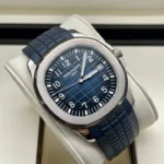 Paying tribute to the 20th anniversary of the Aquanaut launched in 1997, the men’s model is now available in the new 42.2-millimeter “Jumbo” format. It features an embossed dial subtly gradated from black to night blue. Decidedly masculine looks for this incarnation of casually elegant chic framed by a delicately satin-finished bezel. The white-gold case is water resistant to 120 m and protects the self-winding caliber 26‑330 S C movement.