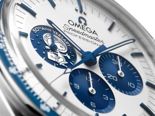 This 50th anniversary timepiece pays tribute to the “Silver Snoopy Award” that OMEGA received from NASA astronauts in 1970,