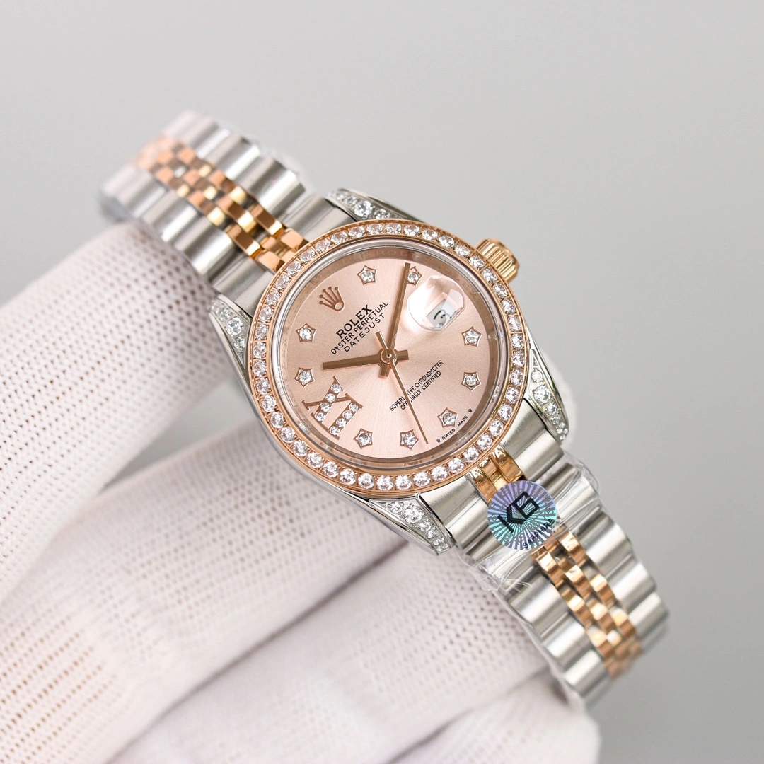 The Oyster case is matched with a diamond-encrusted bezel, and the sides of the case and lugs reflect an elegant luster, making the outline of the 28 mm Oyster case more prominent and more attractive. As a Rolex classic ladies’ watch, the ladies’ timepiece is the continuation and sublimation of the brand’s classic timepiece, and has always been synonymous with elegant style and precise timepieces.