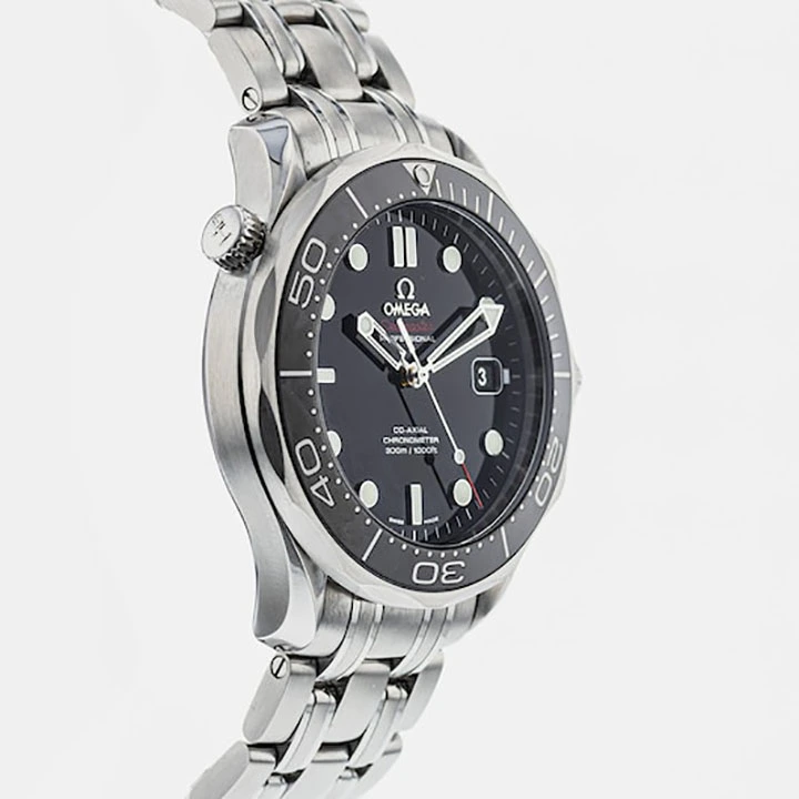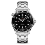 The watch is presented on a stainless steel bracelet. This OMEGA Seamaster Diver 300M is powered by the Co-Axial calibre 2500.