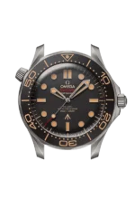 Identical to 007’s watch in No Time To Die this 42mm Seamaster, in strong yet lightweight Grade 2 Titanium, sports a brown tropical aluminium bezel ring and dial.