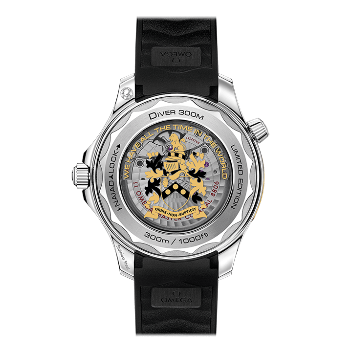- Screwed-in transparent case back with the engraving oriented & aligned with the watch, thanks to Omega’s patented Naiad Lock system.
