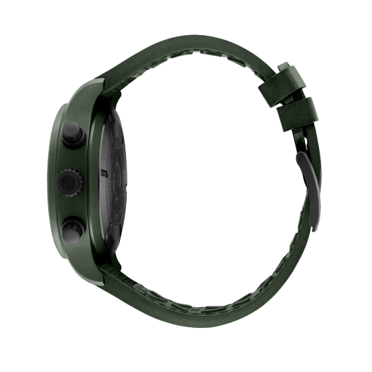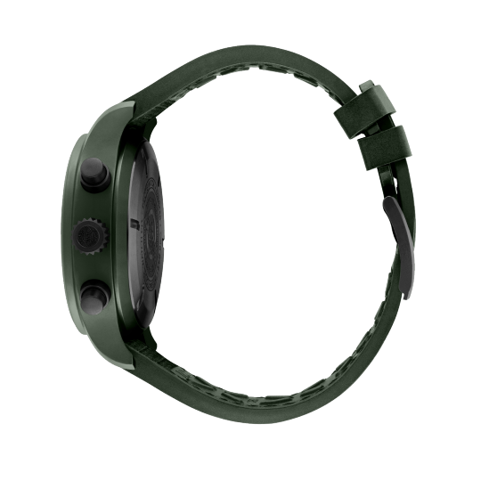 Ceramic case, Automatic, self-winding, Diameter 44.5 mm, Green dial with luminescence, Green rubber strap with textile inlay, Strap width 21.0 mm.