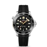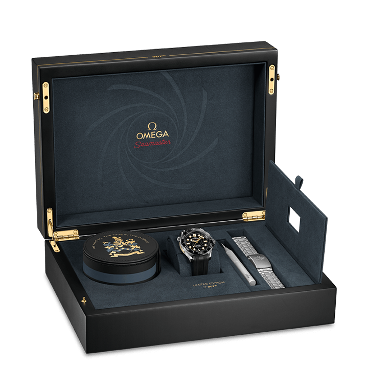 Celebrating its enduring partnership with James Bond, OMEGA has created this Seamaster Diver 300M Limited Edition timepiece presented in its own presentation box with an additional stainless steel bracelet. With only 7,007 pieces available, the 42 mm stainless steel watch has a black rubber strap and features an 18K yellow gold plate on the side of the case, engraved with each Limited Edition number.