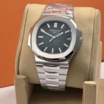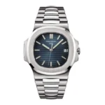Patek Philippe Nautilus Watches. 40mm stainless steel case, sapphire crystal back, screw-down crown, black-blue dial with gold applied hour markers with luminescent coating, self-winding caliber 324 SC movement with date and sweep second hand, approximately 45 hour of power reserve, stainless steel bracelet. Water resistant to 120 meters.
