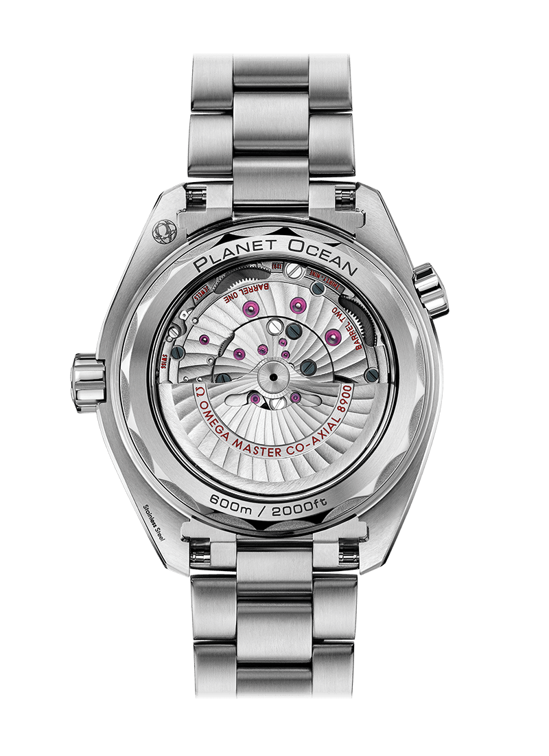 The OMEGA Seamaster Planet Ocean 600M Master Chronometer is water resistant to 600 metres / 2000 feet / 60 bar, and has a helium-escape valve. The OMEGA Master Chronometer calibre 8900 at the heart of this timepiece can be seen through the transparent caseback. To achieve Master Chronometer status, it has passed the 8 rigorous tests set by METAS (The Swiss Federal Institute of Metrology).