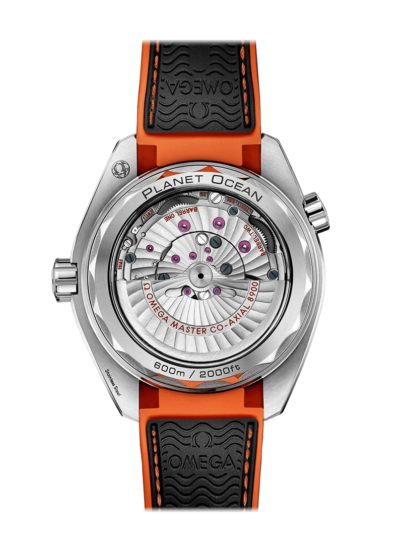 The OMEGA Seamaster Planet Ocean 600M Master Chronometer is water resistant to 600 metres / 2000 feet / 60 bar, and has a helium-escape valve. The OMEGA Master Chronometer calibre 8900 at the heart of this timepiece can be seen through the transparent caseback. To achieve Master Chronometer status, it has passed the 8 rigorous tests set by METAS (The Swiss Federal Institute of Metrology).