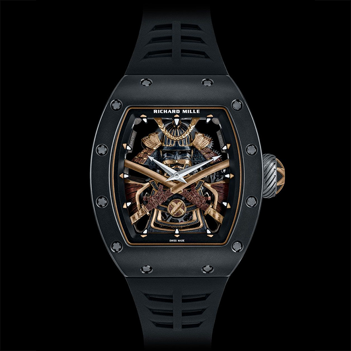 A work of art of impressive realism, the RM 47 Tourbillon incorporates an extremely compact calibre, specially designed to make room for the samurai suit. The boldness of its volumes gives this decoration such a presence that it gives the impression of sculpture almost as much as of engraving.