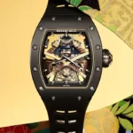 A work of art of impressive realism, the RM 47 Tourbillon incorporates an extremely compact calibre, specially designed to make room for the samurai suit. The boldness of its volumes gives this decoration such a presence that it gives the impression of sculpture almost as much as of engraving.