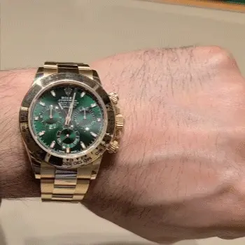 The Daytona’s chronograph feature functions are activated by pushers that screw down like the winding crown when they are not in use, guaranteeing waterproofness to 100 metres. One press to start, stop or reset the chronograph produces a crisp, clear click that was perfected using the most advanced technology. Rolex watchmakers also perfected the mechanism to suit the ideal finger pressure on the pushers, and engineered it to provide an instantaneous and accurate start to the timing without sacrificing reliability.