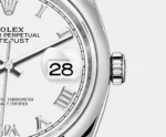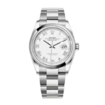 THIS OYSTER PERPETUAL DATEJUST 36 IN OYSTERSTEEL FEATURES A WHITE DIAL AND AN OYSTER BRACELET.