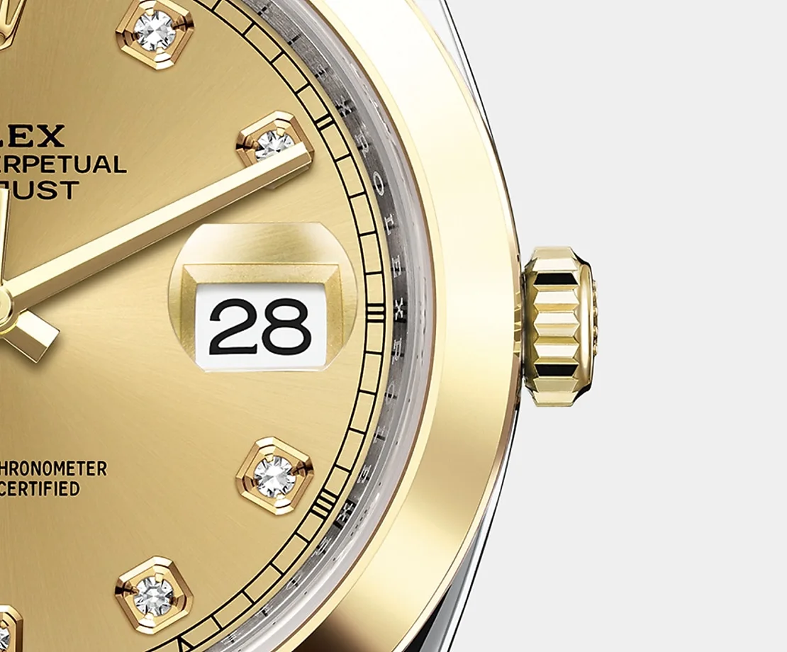 THIS OYSTER PERPETUAL DATEJUST 41 IN OYSTERSTEEL AND YELLOW GOLD FEATURES A CHAMPAGNE COLOUR, DIAMOND-SET DIAL AND AN OYSTER BRACELET.