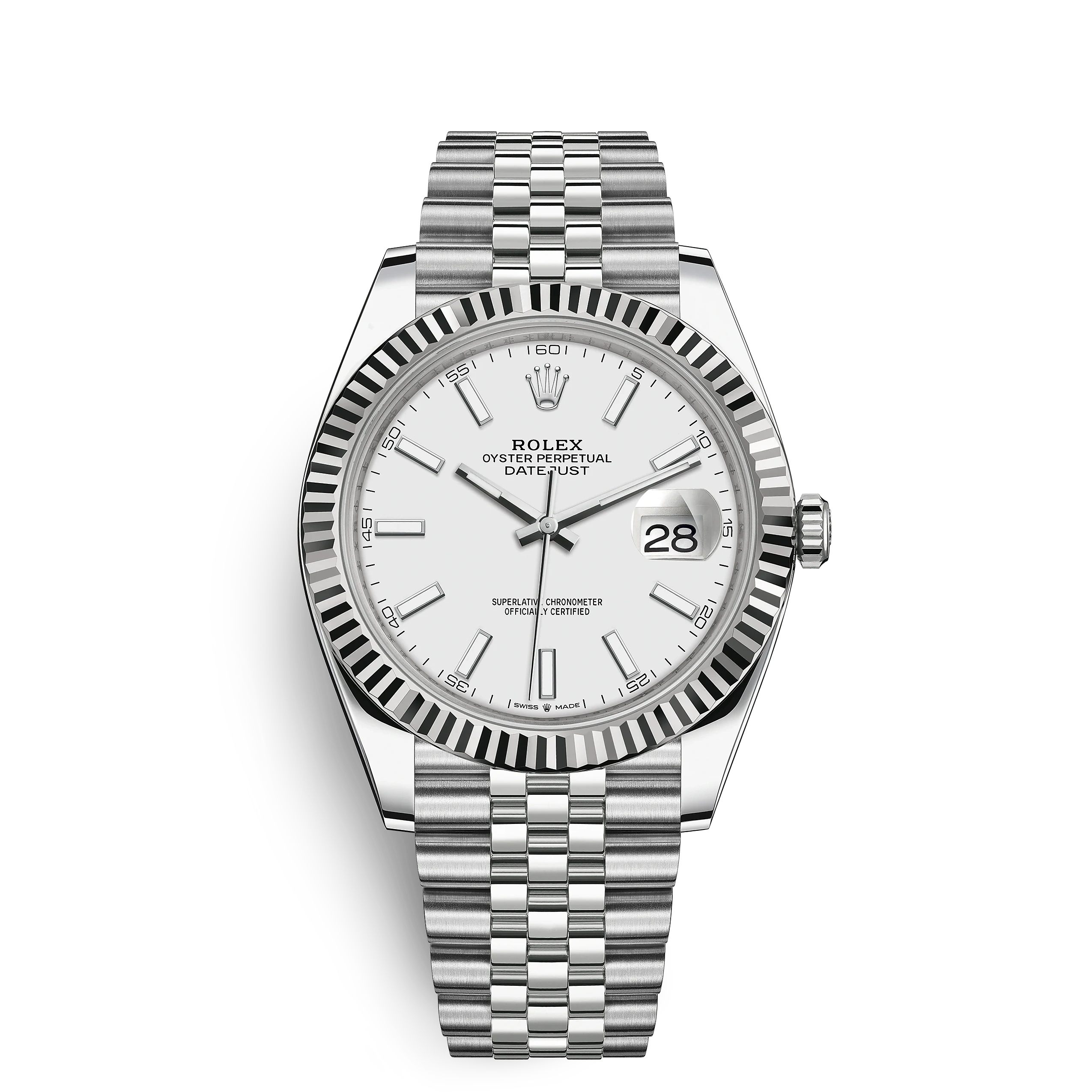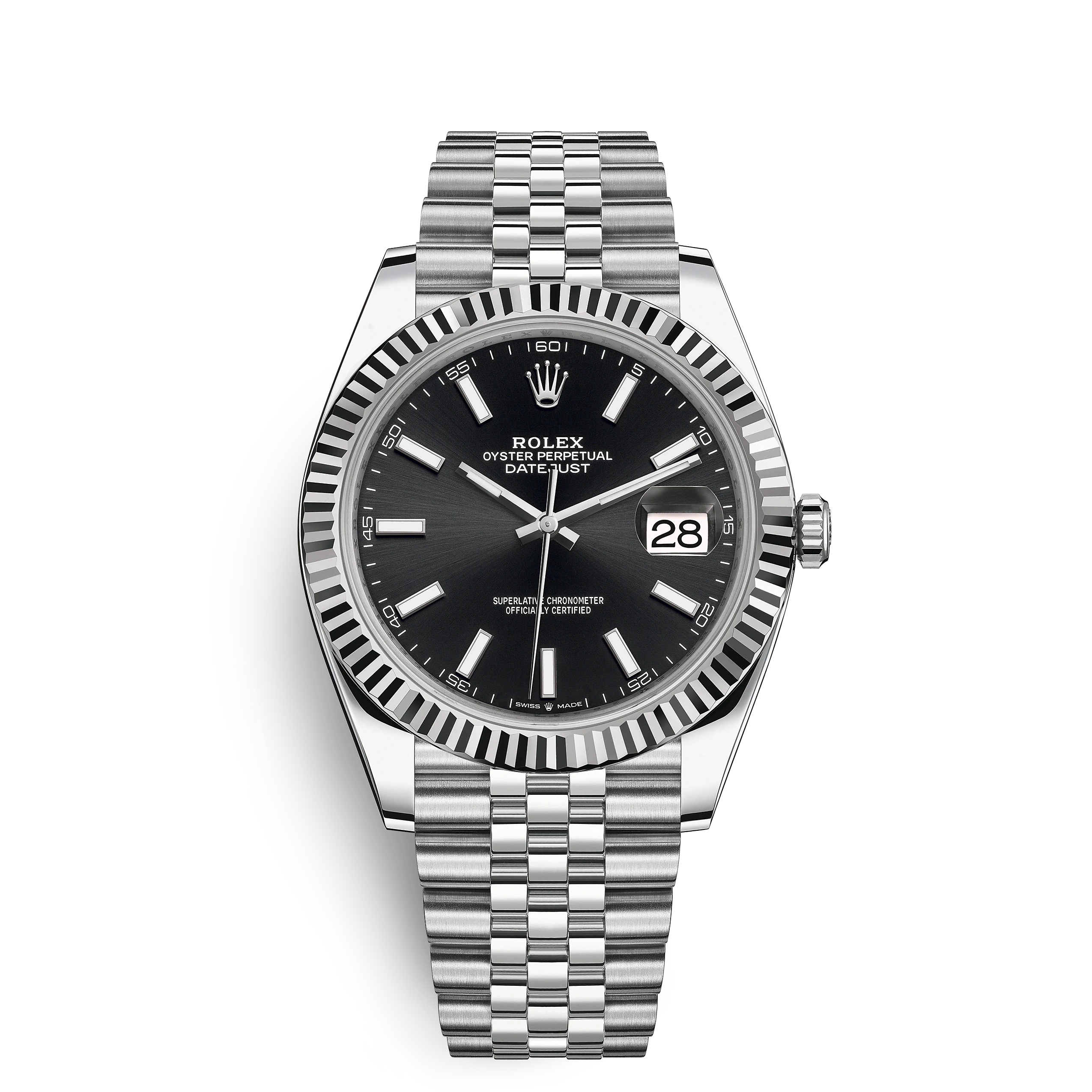 The light reflections on the case sides and lugs highlight the elegant profile of the 41 mm Oyster case, which is fitted with a fluted bezel. Aesthetically, the Datejust has spanned eras, while retaining the enduring codes that make it, notably in its traditional versions, one of the most recognized and recognizable of watches.