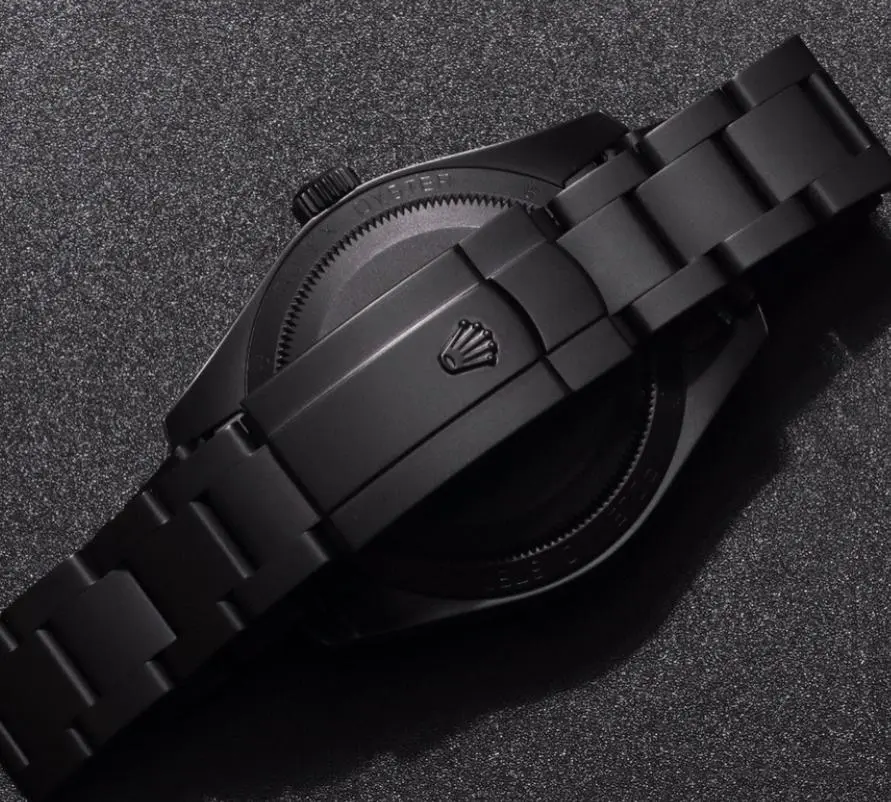 There is a special black coating on the case and chain strap, so that the whole watch looks like a foggy black fashion style. Since the base 116400 of the watch is the version before the green glass is replaced, the edge of the mirror surface will not show through. The green light of the signboard. As for the dial, this watch changed its dial to dark gray with the blackening of the case. In addition, the luminous paint on the hour markers and hands was also changed to black, and the original orange lightning needle of the watch was also changed.