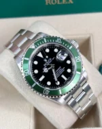 Since the Submariner’s inception, Rolex has consistently upgraded and updated it with the latest technology, all while staying true to its original design. One of the first updates came in the late 1960s, when the brand added a date display to the dial. By the mid-1970s, the Submariner models began showing many of the attributes we see today, like the transition of the Submariner text on the dial from red to white, the addition of sapphire crystal in place of acrylic, a new case design that increased the model’s water resistance to 300 meters, and an upgraded movement offering quick-set date functionality.