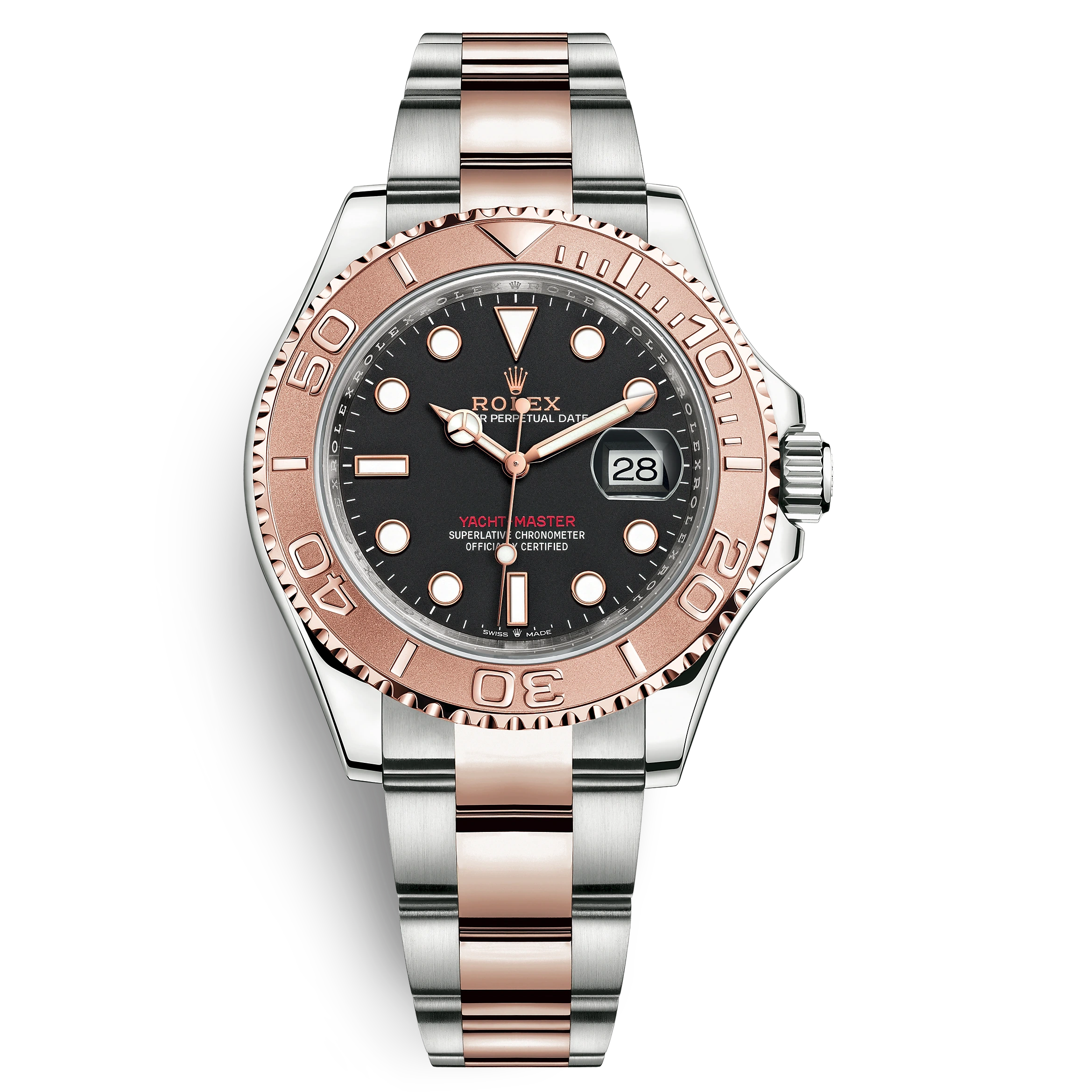 THE OYSTER PERPETUAL YACHT-MASTER 40 IN OYSTERSTEEL AND EVEROSE GOLD WITH AN OYSTER BRACELET.