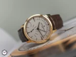 The dual retrograde display for the day of the week and date gives an original aesthetic signature. While the design gives an air of simplicity, the dual retrograde is evidence of an underlying mechanical complexity.