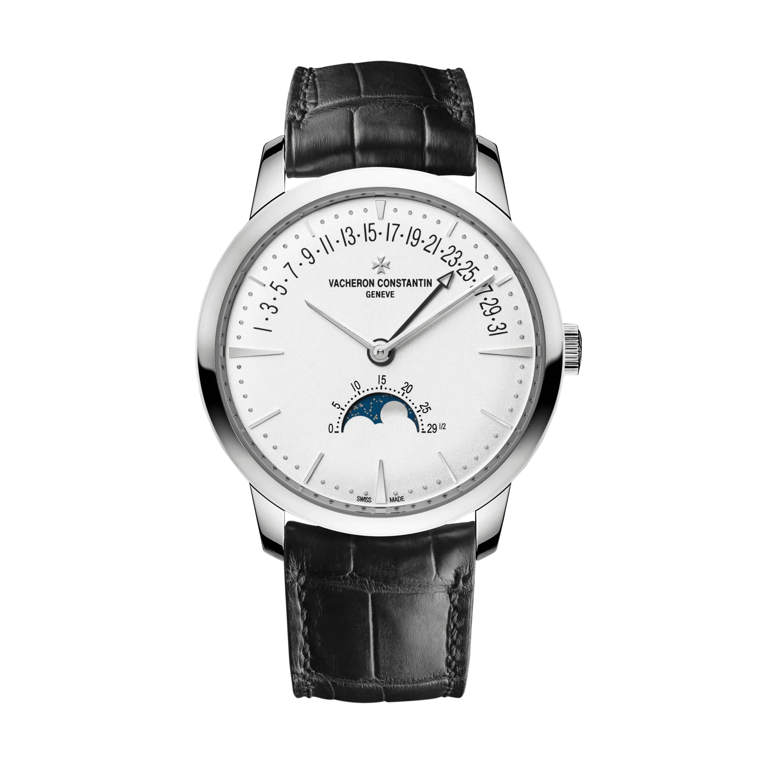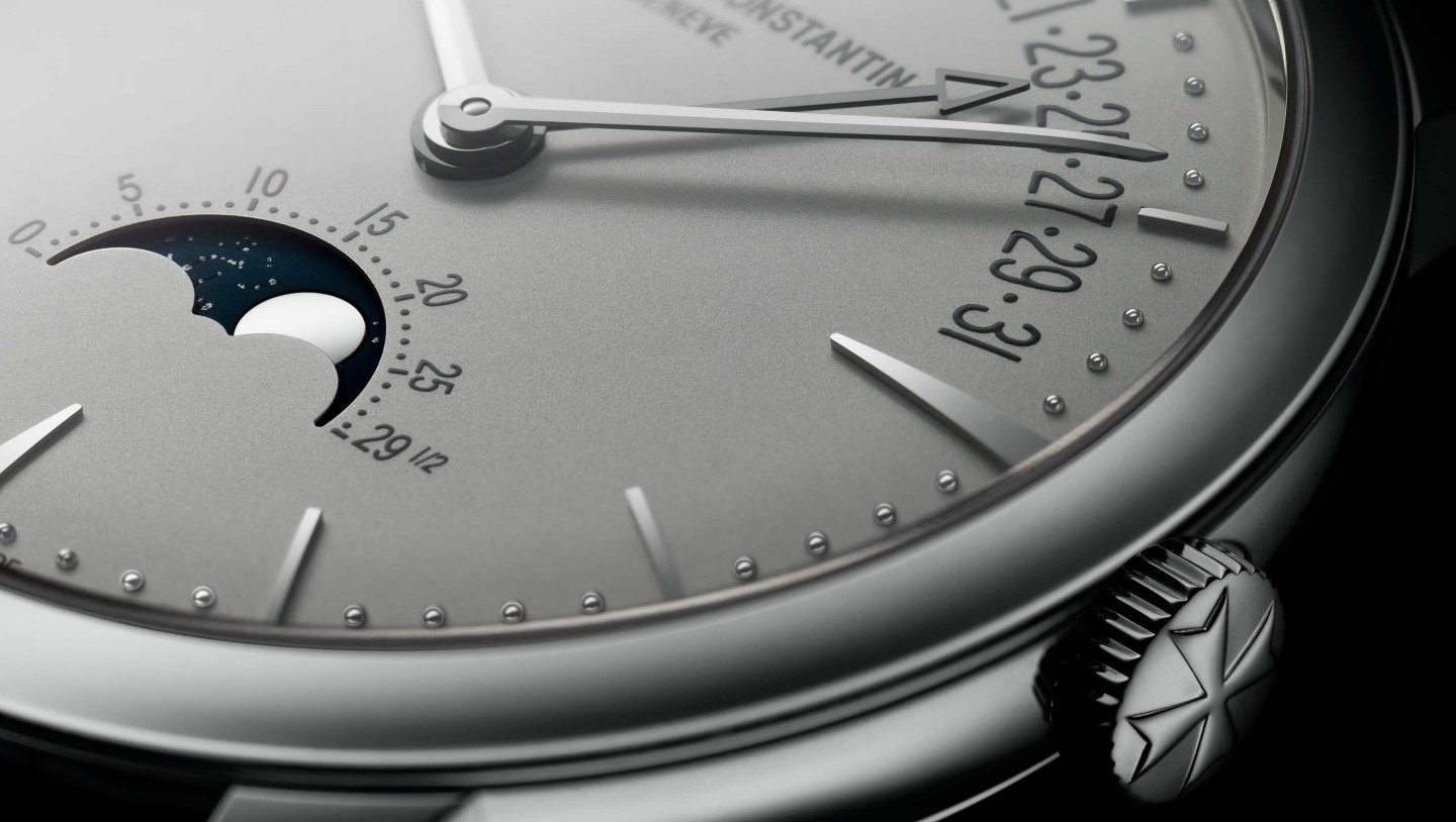 From an astronomical point of view, the lunar cycle lasts 29 days, 12 hours, 44 minutes and 2.8 seconds. The precision moon phase reproduces the real cycle of the earth’s satellite, with a cycle of 29 days, 12 hours and 45 minutes. This makes for a difference of one day in every 122 years. In comparison, simple moon phases require adjustment every 3 years.