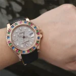 Non scratch real Sapphire crystal is use on all our Swiss Replica watches. Been one of the hardest substances on earth it’s virtually impossible to scratch unlike mineral glass found other replicas. Real Moissanite diamond gem is hand-faceted by our gem cutters to offer the same brilliance and spark found on the genuine watches. We guarantee that your Swiss replica watch diamonds brilliance will last forever.